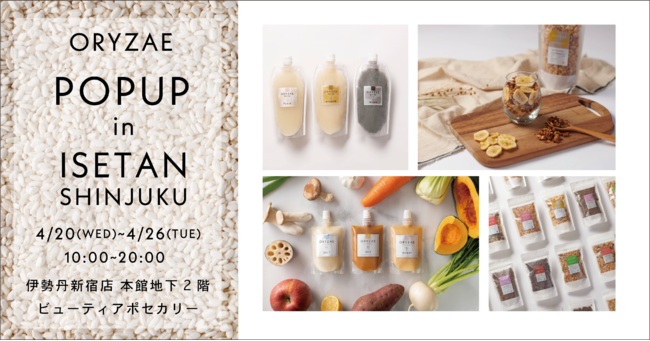 株式会社アグクル(所在地:東京都品川区、代表取締役:小泉泰英)が展開する、“手軽に腸活”をテーマとしたフードコスメブランド「ORYZAE(オリゼ)」は、2022年4月20日(水)から4月26日(火)の7日間、伊勢丹新宿店 本館地下2階 ビューティアポセカリーにて、期間限定でポップアップショップを出店します。