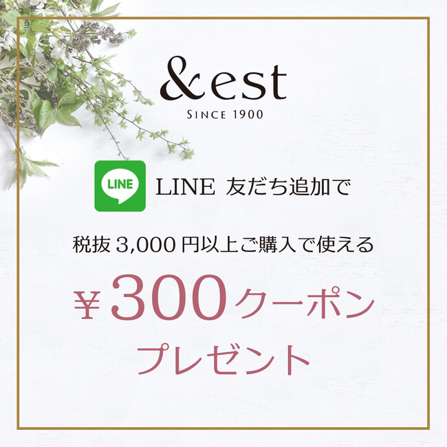 &est公式LINEと友だちになると、&est公式サイトで使える300円OFFクーポンをもれなくプレゼント。