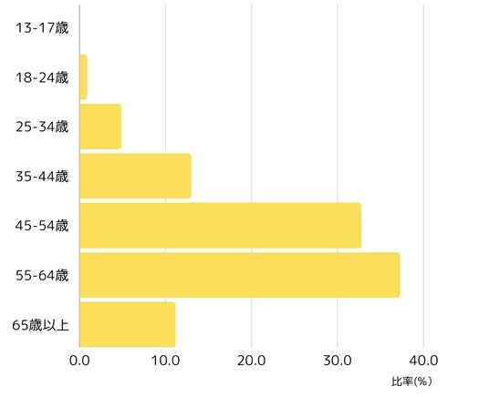 この1年の視聴者層を分析しました。下図のように、年齢層は45歳~64歳が中心となっており、全体の70.1%に達しています。また男性の比率が6割を超えています。