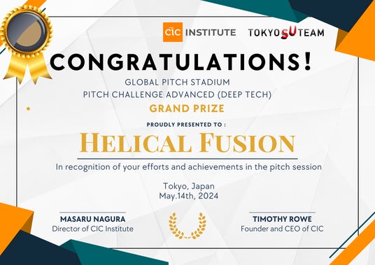 世界初の定常核融合炉実現を目指し、ヘリカル型核融合炉の開発を進める日本のスタートアップである株式会社Helical Fusion(本 社:東京都中央区、代表取締役CEO:田口昂哉、以下「Helical Fusion」)は、2024年5月14日にSusHi Tech Tokyo 2024のサイドイベントとして国内外の投資家向けに開催された「Investor Day Associated with SusHi Tech Tokyo」*内で実施された海外投資家向けピッチコンテストにて「GRAND PRIZE」を受賞し、賞金100万円を獲得したことをお知らせします。