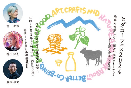 開業に先立ち、「soranotani」が建設予定の飛騨古川駅東口の工場跡地にて、プロジェクトのキックオフイベントとなる「Co-Innovation Festival」を開催いたします。マルシェや蜷川実花展、トークショー、薬草サウナなど、さまざまな体験ができます。
