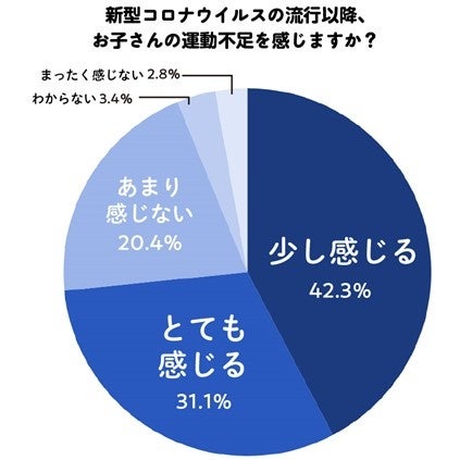HugKumが2023年に行った子どもの体型に関する調査※1では、新型コロナウィルスの流行以降、子どもが運動不足だと感じている人が7割以上。
