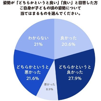 このことから、6割以上の人が、子どもの頃からの姿勢が大人になっても同じ、あるいは影響を受けることがわかりました。
