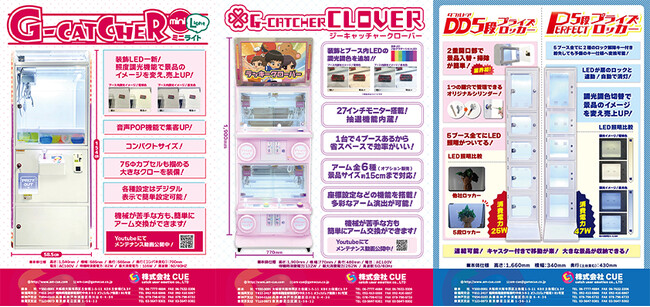 クレーンゲームやロッカーには、先行導入いただいておりますお客様から好評の、人感センサーを利用した音声POP機能や機械内部のLED照明の調光機能を標準化した最新バージョンで出展致します。