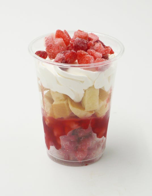 ◆イチゴのカップショートケーキ:パンケーキをカップでショートケーキ仕立てに