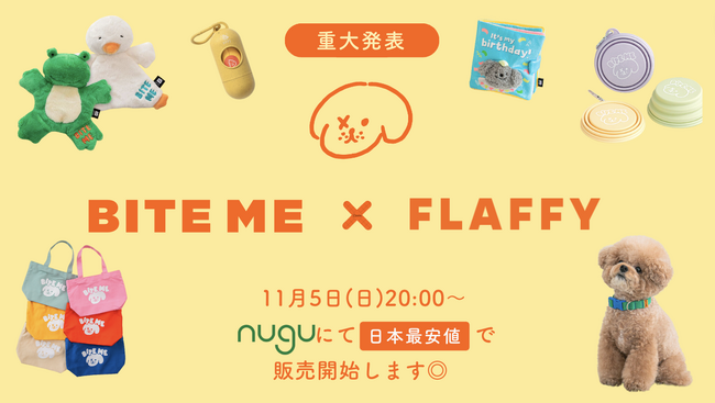 株式会社FLAFFY(本社:東京都渋谷区、代表取締役:廣田 智沙、以下FLAFFY)は、韓国の人気ブランド「BITE ME」と日本初のコラボ販売をスタートします。韓国発のアパレルECサイト「nugu」にて11月5日19時から3日間で販売します。https://www.nugu.jp/product?displaygroup=4817