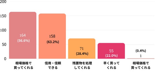 調査結果:売却先に求めるのは「相場価格」と「信用・信頼」がトップ2