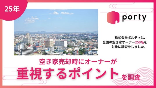 株式会社ポルティ(神奈川県川崎市、代表取締役:平 瑶平、以下「ポルティ」)は、全国の空き家オーナー(または相続予定の方)250名を対象に、空き家を売却する際にどのような点を売却先に求めるかについて調査しました。