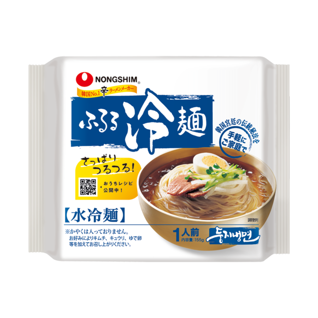 本場韓国の水冷麺の味を手軽に家庭で楽しめる。熱風で乾燥したコシのあるノンフライ麺に、韓国特製トンチミスープ(大根の塩漬けからにじみ出たスープ)にリンゴ酢のほのかな酸味が溶け込んで、甘みのあるさっぱりとした味が楽しめます。