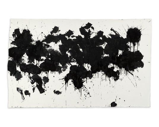 Ushio Shinohara, Black on White, 2025. Acrylic paint on unstretched canvas, 72 x 96 in.《Autumn Sunshine》(2025年)