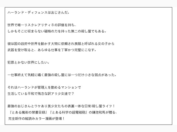 ■ 縦読みフルカラー漫画『無双の熟年ヒットマンは、娘たちと静かに暮らしたい』が連載決定!