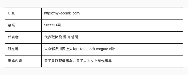 ◼︎株式会社HykeComic 会社概要