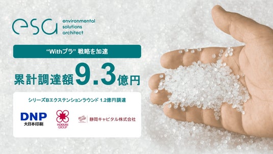 プラスチックのリサイクルを中心とした環境事業を展開する「株式会社esa(読み:イーサ、意味:Environmental Solutions Architect の頭文字)」(本社:東京都港区、代表取締役:黒川 周子、以下「当社」)は、シリーズBエクステンションラウンドにおいて総額1.2億円の資金調達を完了したことをお知らせいたします。今回の調達では、大日本印刷株式会社(DNP)、ホッカンホールディングス株式会社と資本業務提携を締結、静岡キャピタル株式会社が参画をいたしました。累計調達額は9.3億円に到達しております。当社は地域経済と連携し、サーキュラーエコノミーの実現に向けた全国展開を加速させていきます。