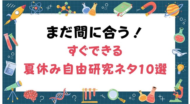 夏休みも終盤に差し掛かりましたが、まだ自由研究が終わっていない方も多いのではないでしょうか。時間がない中でもすぐにできて、面白い自由研究ネタを調査して集めたので、自由研究の参考にしてみてください。