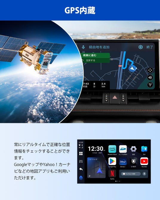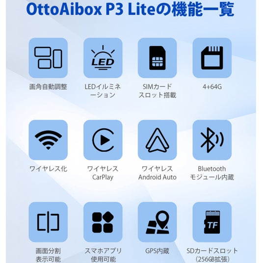 OttoAibox P3 Liteは、TVER、hulu、ABEMA、Disney+、ヤフーカーナビなど日本人気の高いアプリが初期搭載されており、別途ダウンロードする手間が不要です。また、プレイストアから好きな動画系アプリをダウンロードして視聴することも可能です。さらに、OttoAibox P3 Lite 本体には microSD カードのスロットが搭載されているため、microSD カードに入れた動画や音楽を視聴することもできます。そのため、自宅であらかじめ microSD カードに動画や音楽をダウンロードしておけば、通信料を気にすることなく車内で視聴することも可能です。