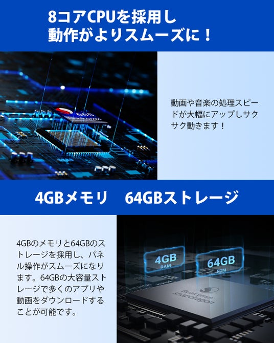 CPU:Qualcomm Snapdragon 665 8 コア、64 bit 11 nm、最大 2.0 GHz