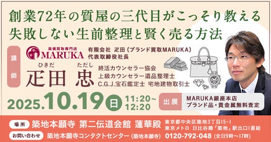 ブランド買取 MARUKAの社長が終活フェアにて登壇「創業72年の質屋の三代目がこっそり教える、失敗しない生前整理と賢く売る方法!!」 10/19(日)11:20~12:20