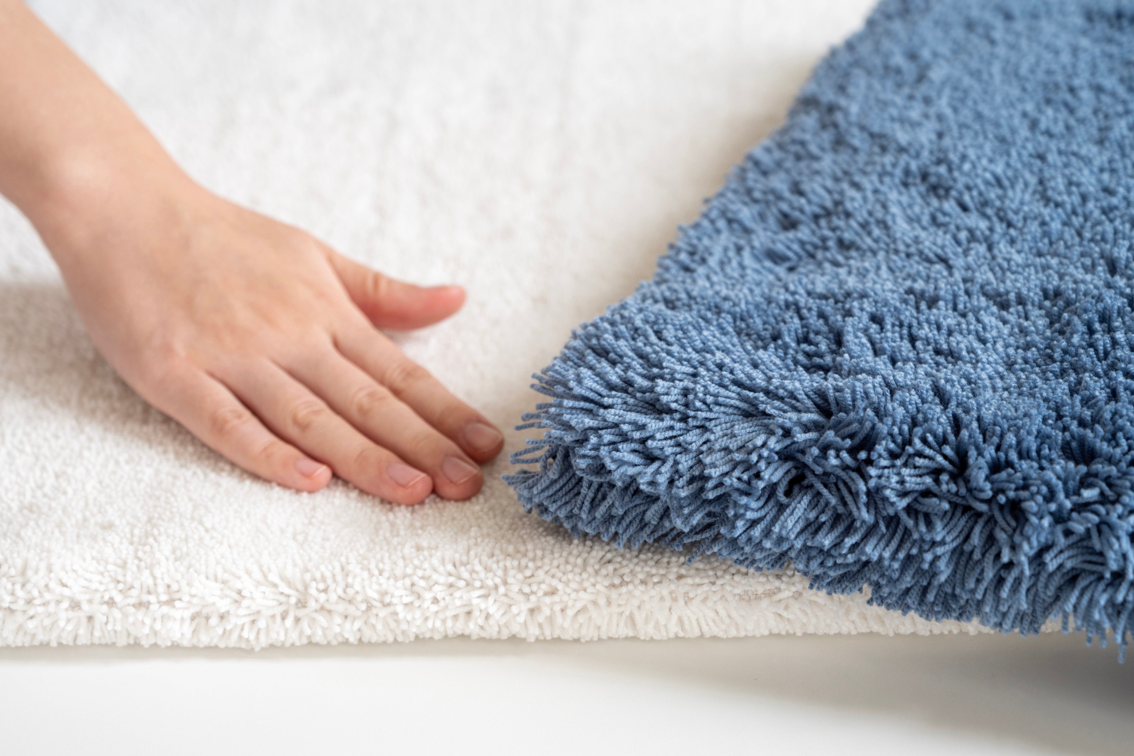 質感を確認できる実物見本マットの高さは「ふんわりと贅沢な踏み心地の29mm」と「お手入れしやすく軽やかな13mm」の2種類をご用意。実際に触れて、ご自身の好みの質感をお選びいただけます。
