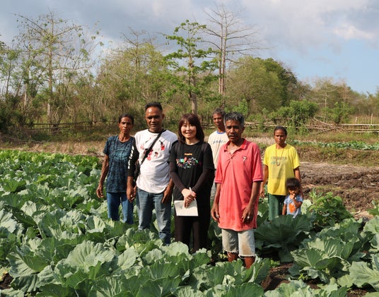 LIFEの支援を受けたヤングランダ氏のキャベツ畑:ノートを持つ女性が古賀氏(2024年9月撮影)