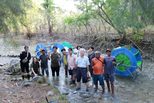 川の流れる力を動力とした燃料いらずな給水ポンプを2019年から開発中です。2024年度にスンバ島で日本人と現地の住民と一緒にポンプを組み立てて実際の川に設置したところ、3m崖上にある畑へ給水することに成功しました。このポンプをより住民が使いやすいよう現在改良を進めています。