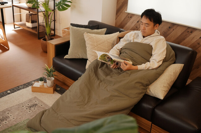 保温性の高いやさしい肌触りの生地と、寝袋由来のあたたかい中綿を採用。