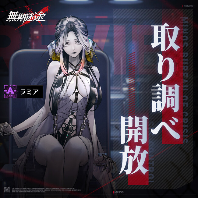 ■ 逮捕詳細:期間中、イベントで新登場するS級コンビクト「カベルネ」、A級コンビクト「ラミア」を獲得できます。また、S級コンビクト「カベルネ」、A級コンビクト「ラミア」「メイス」「アリエル」の獲得確率がUPします!