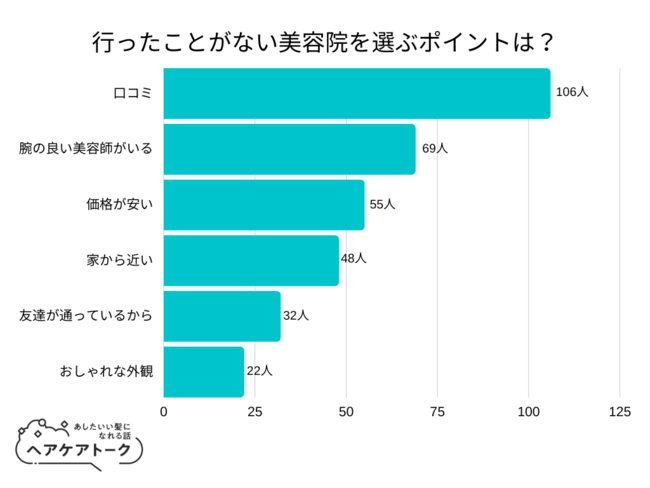 「行ったことがない美容院を選ぶポイントは?」とアンケート調査した結果、1位は『口コミ』でした。