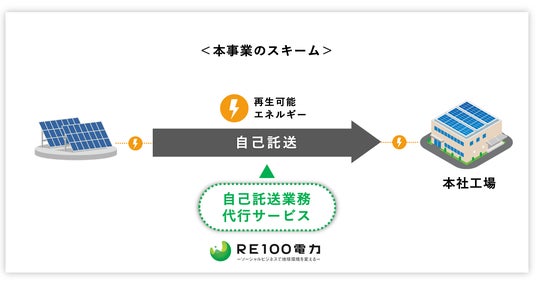 *1 企業が自家発電設備を導入して発電した電力を、送配電事業者が保有する送配電ネットワークを利用して他地域の施設などに供給する電力調達方法。*2 自己託送業務代行サービス(https://www.re100-denryoku.jp/support)