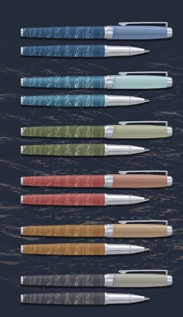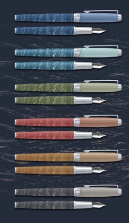 地球環境の保護と自然への敬意をテーマに掲げ、万年筆とローラーボールペンの両方をラインナップ、それぞれ6色のバリエーションが揃います。