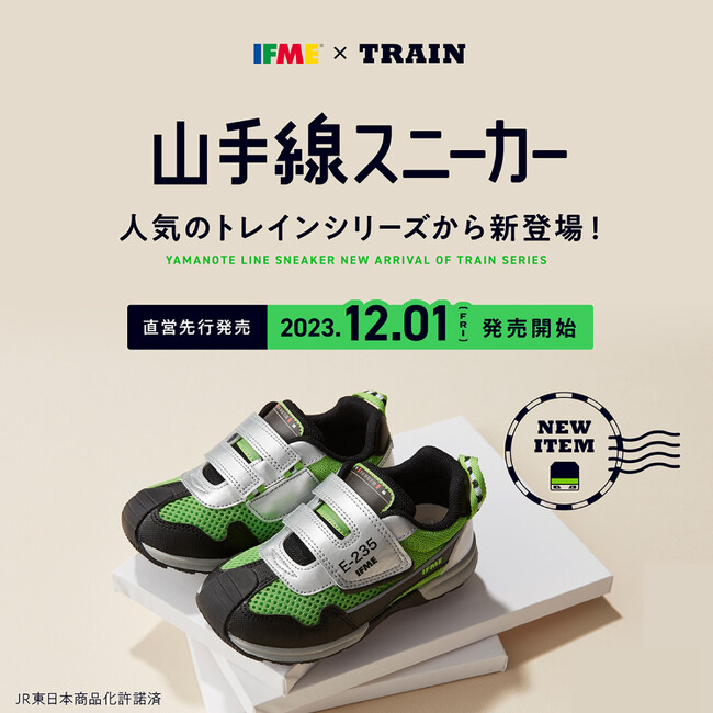 IFME×TRAINシリーズの新商品として『IFME×TRAIN 山手線スニーカー』が登場!IFMEの各公式ショップでは、先行して2023年12月1日(金)より販売開始いたします。