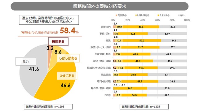 15.58.4%が、業務時間外の連絡へ即時対応を求められている(過去1カ月)。