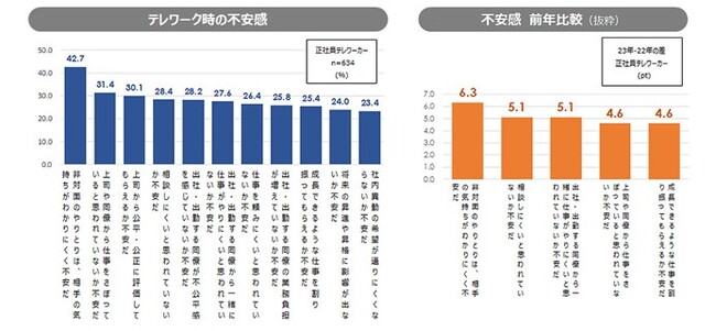 12.テレワークしているときの不安感は、「相手の気持ちがわかりくい」が42.7%。全体的に前年同期より増加。