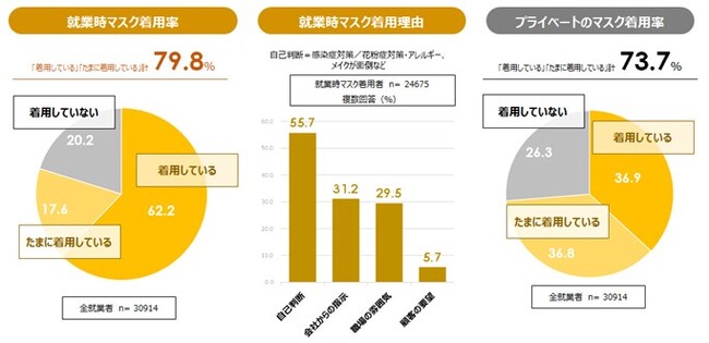 就業時のマスク着用率は約8割。着用理由は「自己判断」が55.7%