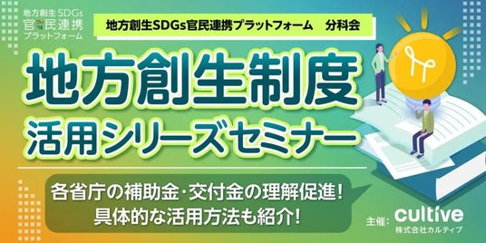 企業版ふるさと納税を活用した地域課題解決プラットフォーム「river(リバー)」を運営する株式会社カルティブ(本社:神奈川県横浜市、代表取締役:池田 清)は自治体や企業の皆様に各省庁が提供する補助金・交付金の活用方法をお伝えする「地方創生制度活用シリーズセミナー2025」を開催いたします。本セミナーでは、各制度に精通した省庁の担当者が登壇し、地方創生や企業版ふるさと納税と相性の良い制度について、30分間でわかりやすく解説いたします。