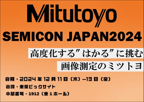 SEMICON JapanはSEMIが主催する半導体をメインとした展示会です。ミツトヨブースでは『高度化する“はかる” に挑む|画像測定のミツトヨ』をコンセプトに掲げ半導体製造工程の生産性向上を実現する各種ソリューションを紹介します。