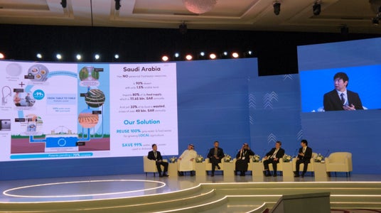 なかでも力を入れていくのが、サウジアラビアで進められている世界一の環境先進都市をつくるための巨大国家プロジェクトです。DG TAKANOはすでに現地の財閥企業と協定を締結し、キッチンから出る排水や食品残渣を100%循環させて農業用の肥料に変える循環システムの開発を進めています。節水ノズルや、水だけで汚れが落ちる食器、それにディスポーザーやバイオタンクを組み合わせた新しいインフラモデルです。これが実現すれば、砂漠の国、サウジアラビアで大量のエネルギーを使ってつくられている水の節約や、二酸化炭素の排出抑制、フードロス削減などに大きく貢献できます。