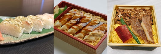 (左から)長崎<梅ヶ枝荘>真鯛の押し寿司(1折)★お一人様2折まで・各日30折限り