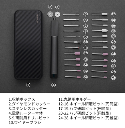 2. 26個の交換ビットを装備し、切断、研磨、穴あけ、彫刻などの機能を搭載。