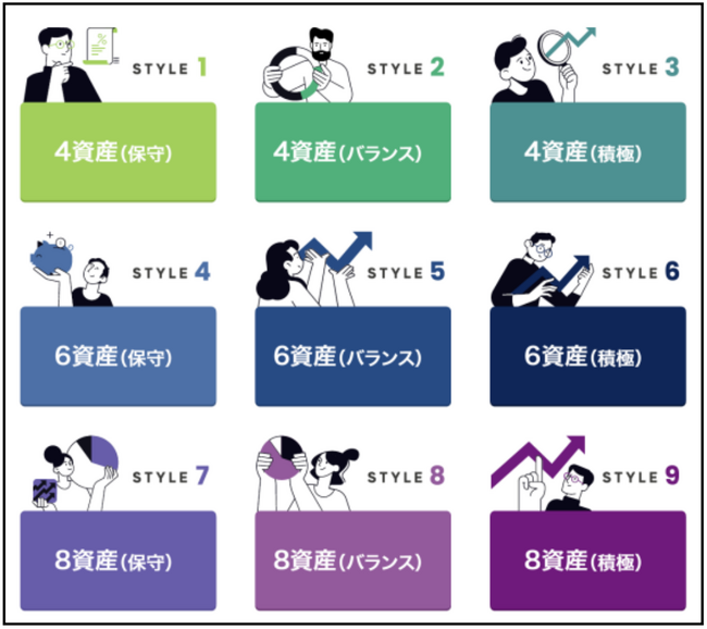 スタイル9(4資産分散・積極型)、スタイル9(6資産分散・保守型)、