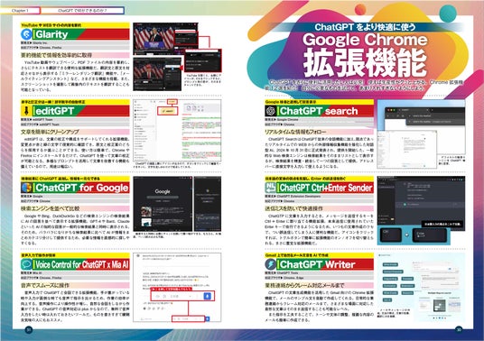 ChatGPTを使ったGoogle拡張機能を12本、話題のGPTsを22本、そして群雄割拠のその他生成AIサービスを92本を厳選して解説! ChatGPTやCopilotだけではない目的に特化したサービスに注目しました。