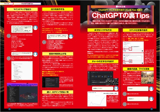 ChatGPTの裏技も紹介。ほかに定型プロンプト集、生成AI用語事典も掲載。より使いやすくためになる誌面を目指しました。