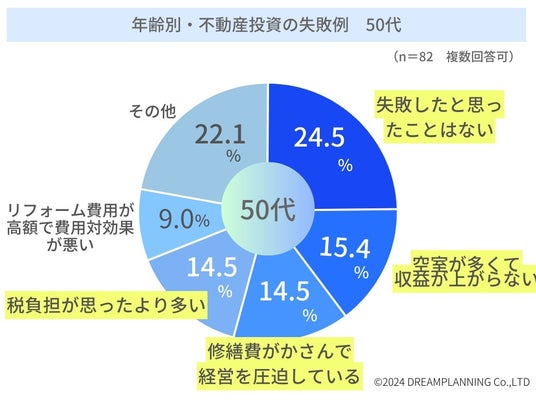 50代の不動産投資で失敗したこと(n=82 延べ110回答・複数回答可)