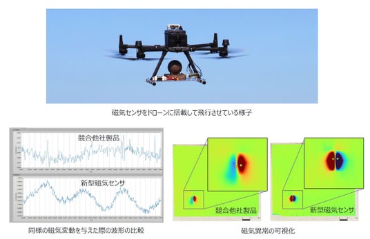 新型センサの特筆すべき点は、磁気ノイズの発生しやすいドローンに搭載してもなお、微小な磁場変化を検知できる点です。これにより、車両や人が入れない場所や危険区域でも、上空から広範囲かつ迅速に磁気異常をマッピングすることが可能となり、現場の探査手法を大きく変革するポテンシャルを持ちます。