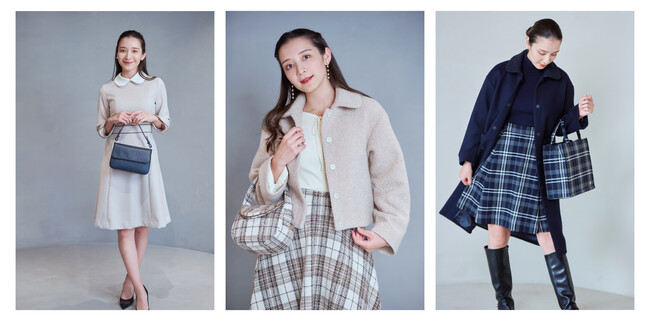 期間中、お洋服の2023冬コレクションの先行受注を行います。お洋服2023冬コレクションは、襟が取り外しできてシーンに合わせてアレンジ可能な長袖ワンピースやコート、着るだけで華やかな印象になるループツイードジャケットが登場します。