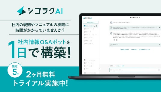 シゴラクAIでは「社内情報Q&Aボット無料構築 & 2ヶ月トライアルキャンペーン」を実施中です。