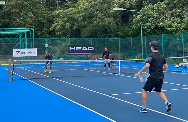 テクニファイバーのコートでは、「T-FIGHT」シリーズをはじめ、「TF40」「TEMPO」「TF-X1」シリーズの試打が行えました。