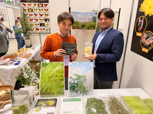 今回は、機能性植物の普及活動などに取り組むワクワクプラント株式会社のブースに当社代表の織田が立ち、世界有数の高栄養植物として知られるモリンガの紹介を担当しました。