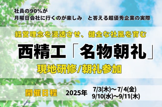 雰囲気が暗く、バラバラだった組織を大改革!「日本経営品質賞」受賞企業へ!名物朝礼に参加し、西精工が実践する組織風土づくりを体験いただきます。