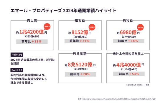 エマール・プロパティーズの2024年通期業績ハイライトは以下の通りです。