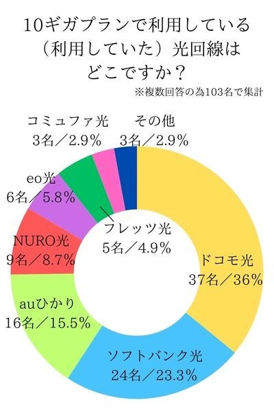 10ギガプランの利用として最も多く選ばれた光回線は、ドコモ光で36%でした。